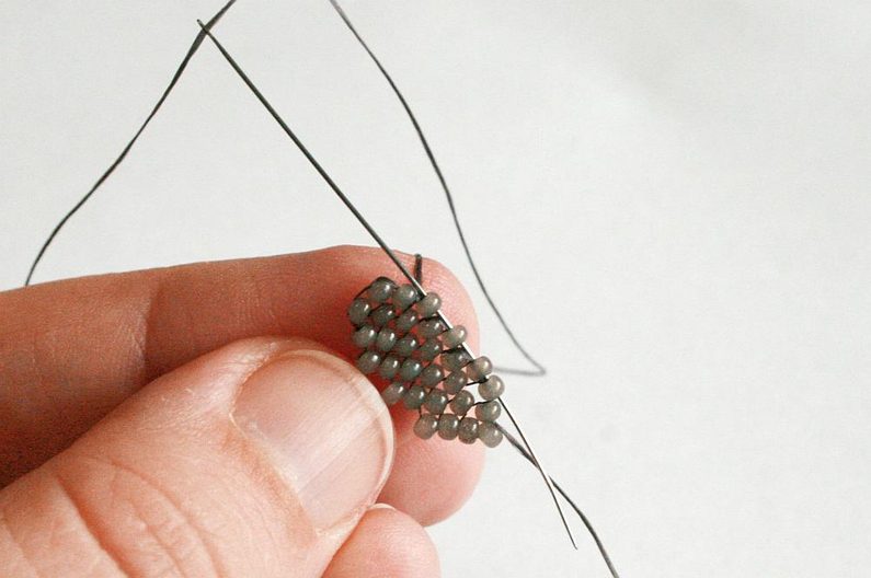 Dále nití k horním korálkům přišijte chlupy – každý chlup je ze 7 korálků