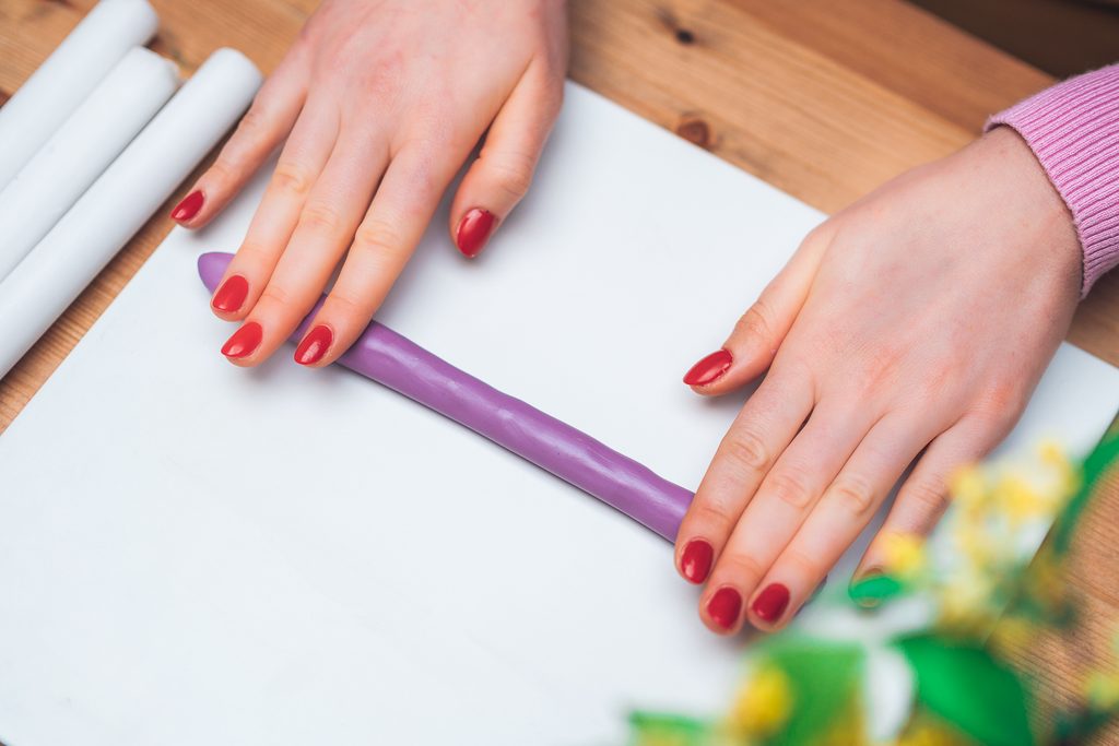 • Na podložce vyválíme tenký váleček o průměru 0,7-1cm. Ten omotáme kolem svíčky podle své fantazie.