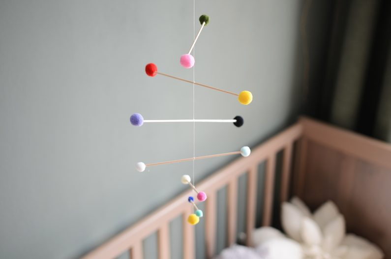 Nad postýlku zavěste v takové výši, aby miminko na mobile nedosáhlo a nemohlo si jeho části například strčit do pusy.