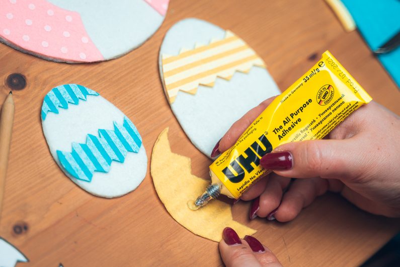 zadní stranu vajíček přilepíme lepidlem a necháme zaschnout.