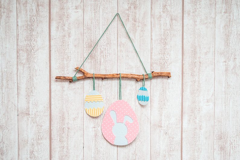 dřevěnou tyčku a rozvrhneme si, jak daleko od ní by měla vajíčka viset. Podle