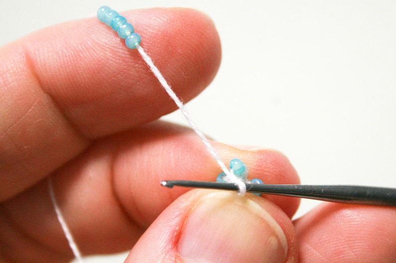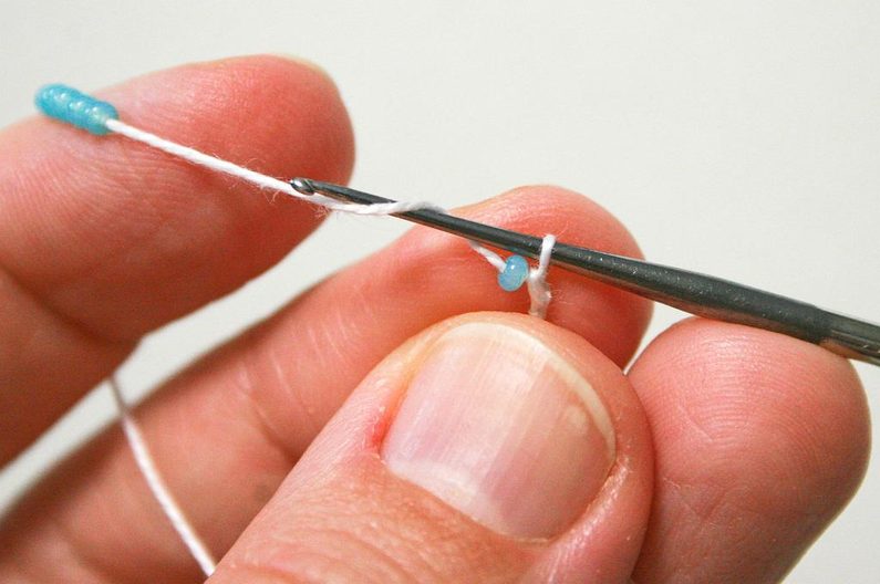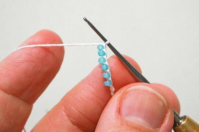 dutinku v požadované délce, uháčkujte poslední řadu bez korálků.