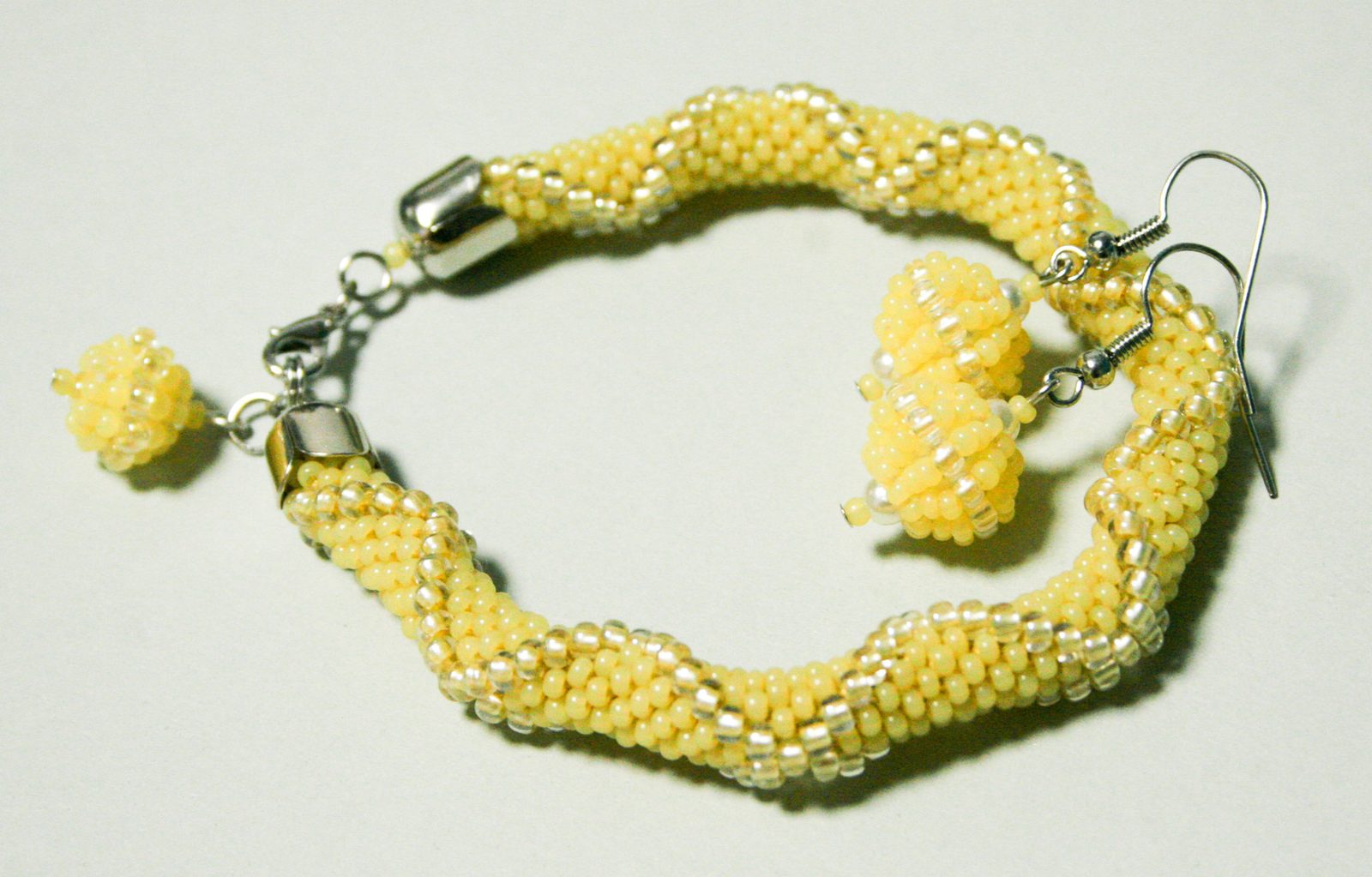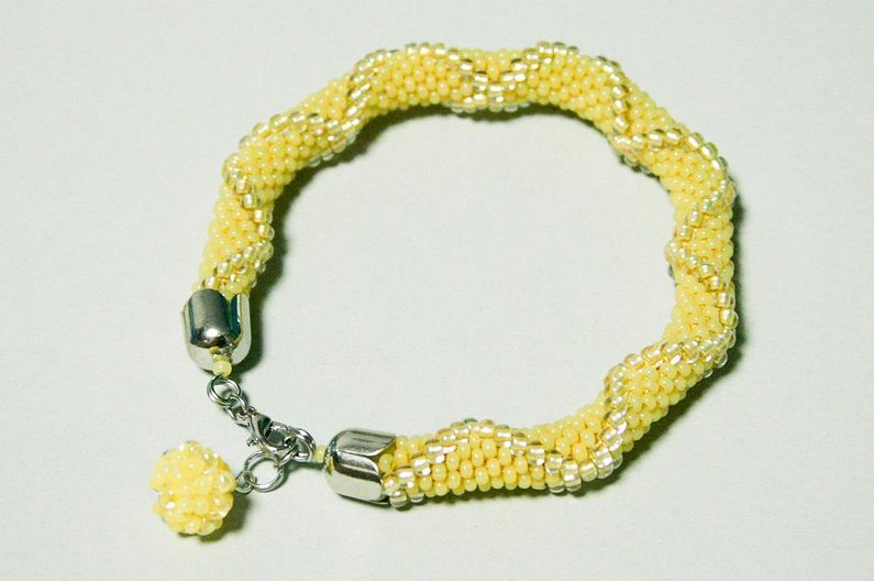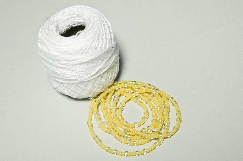 Nejdříve navlékněte na přízi korálky podle vzoru na obr.1, pro dutinku nf dvě otočky délkou 16c (bez zapínáni) opakujte vzor 7 krát. (obr.1-2). Na začátku a konci návku navléknete po 21 korálku PR10, ten kus dutinky bude zakryt kaplíkem.