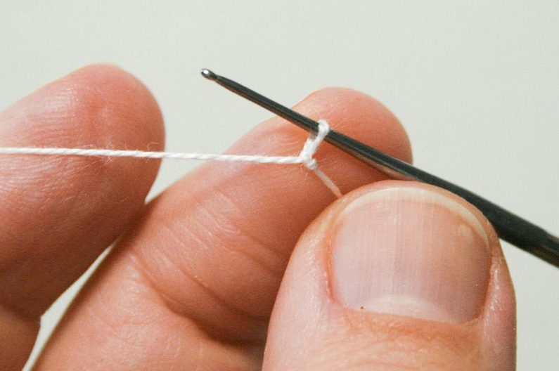 Dále spojte řetízek do kroužku tak, že provléknete háček prvním základním očkem a protáhněte přízi oběma oky najednou (obr.6-7).