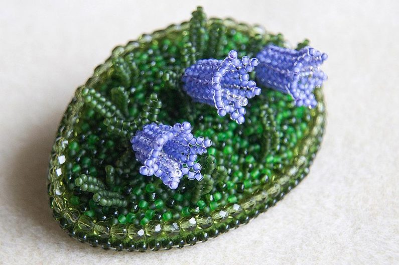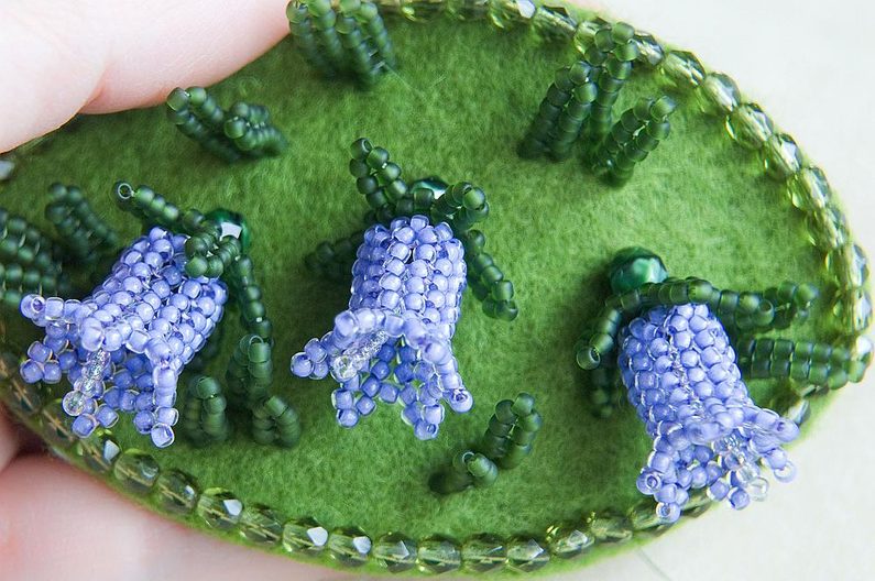 Ušijeme celou poslední řadu. Pokud jsme dobře utahovali, tak je čepička lehce prohnutá. Prošijeme se skrz korálky k začátku nitě, uděláme uzlík a nitě zapošijeme. Máme ušitý vršek zvonku.