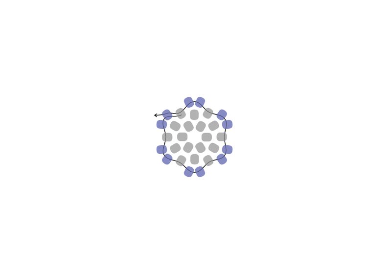 Opakujeme Krok 14: Navlékneme 2 TOHO 11/0, provlékneme vedlejší korálek z dvojice i další korálek z předchozí dvojice pod sebou a provlékneme prostřední přidaný korálek.