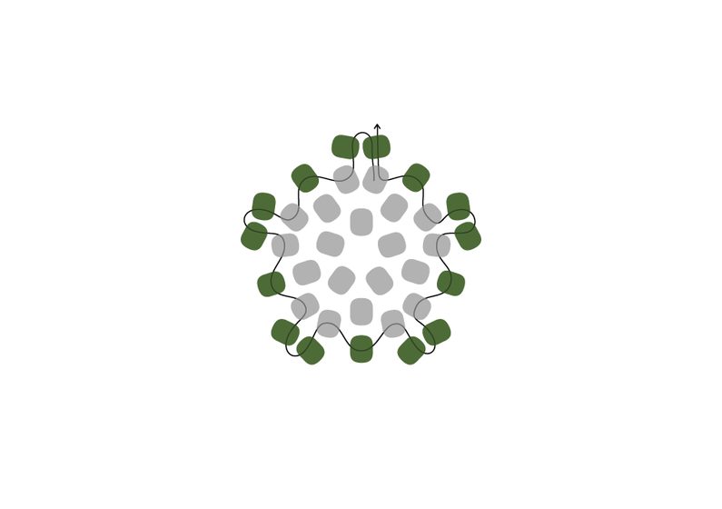 Až obšijeme celý obvod, na konci spojíme první a poslední korálek: provlékneme první korálek seshora směrem k ohňovkám.