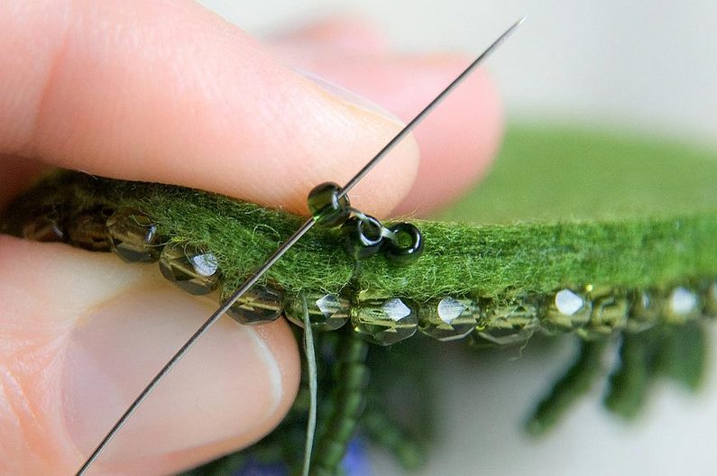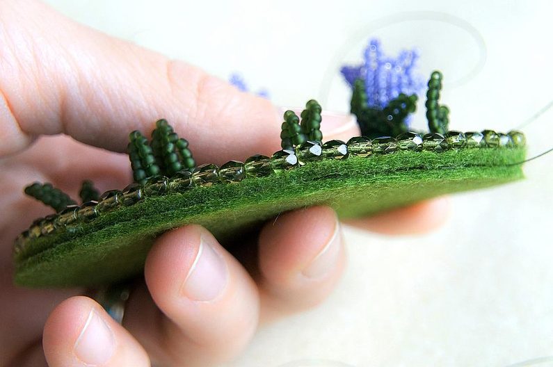 Stejným postupem obšijeme celý obvod. Snažíme se, aby mezi korálky nebyly velké mezery.