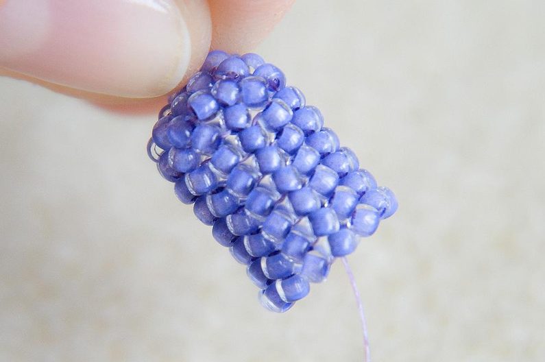 Opakujeme stejný postup, dokud nemáme nad sebou 4 dvojice. Pak již nemusíme prošívat všechny korálky včetně podkladu, ale provlékneme jen dva korálky pod sebou.