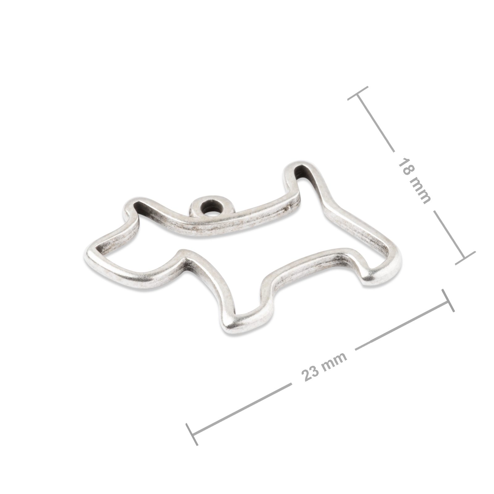 Manumi přívěsek pes 23x18mm postříbřený ze speciálního hyperalergenního kovu zamak je ideální komponent k výrobě vrstvených doplňků, Boho šperků nebo náramků s minerály. Díky povrchové úpravě vzácnými kovy můžete komponent zkombinovat například se stříbrnými nebo pozlacenými řetízky. Vyniknou také na jiných návlekových materiálech, jako jsou kožené řemínky nebo Shamballa šňůra.