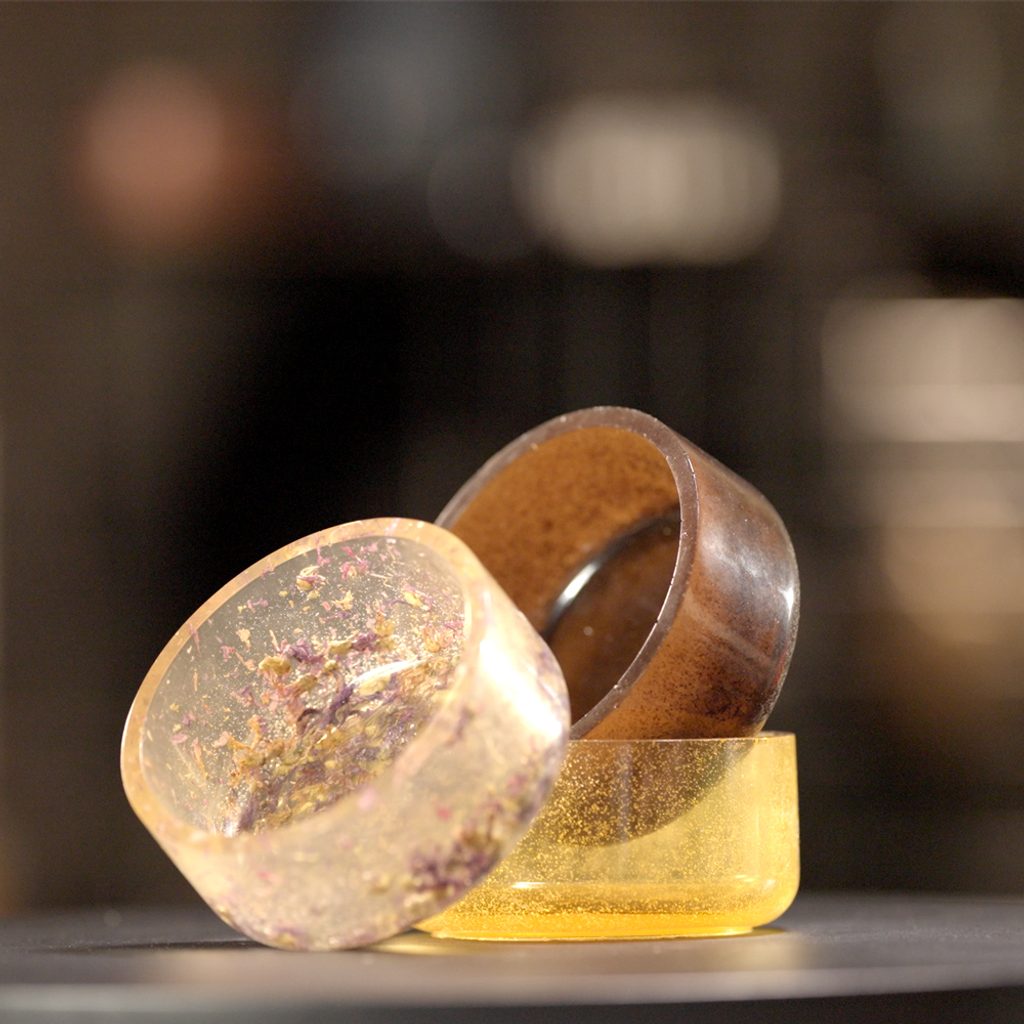 Prozkoumejte kategorii barev, pudrů a glitter třpytek nebo třeba dekorací do pryskyřice, kde najdete Jesmonite GlassRoxx. Výrobky z Reslin® pryskyřice ale můžete ozdobit také třeba skleněnými korálky nebo různými přírodninami, jako jsou semínka, okvětní listy, sušené květiny a podobně. Při použití přírodnin ale vždy doporučujeme nejprve ozkoušet jejich chování na malém vzorku. Pokud není přímo u produktu uvedeno něco jiného, tak se barviva, pigmenty i další ozdoby přimíchávají do hmoty po 1. zahřátí v troubě a slití oleje s aktivátorem.