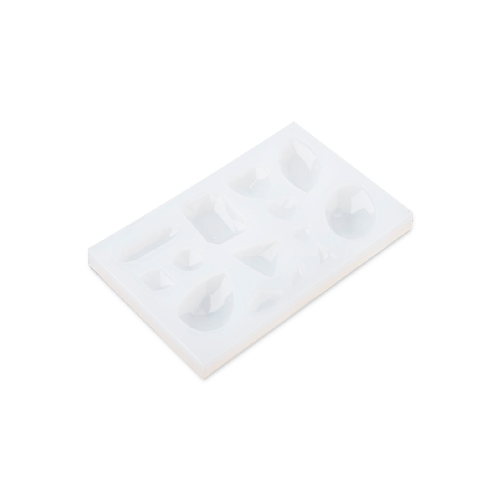Silikonová forma na křišťálovou pryskyřici o velikosti 10 x 6 cm je sada 14 forem broušených kamenů od 0,8 - 2,8 cm. Forma slouží k opakovanému použití. Odlitek z formy vám poslouží jako krásná křišťálová, či kamenná dekorace. K prodloužení životnosti formy doporučujeme před procesem vylévání naaplikovat na formu separátor.