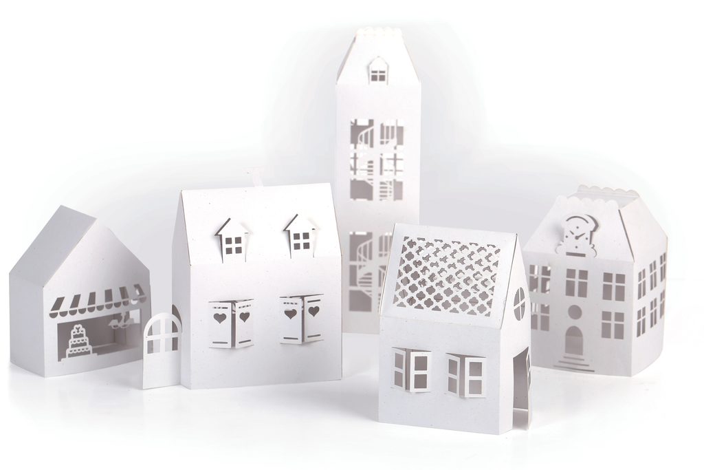 Vytvořte si doma roztomilou vesničku z papíru! Do sestavených papírových domečků můžete vložit elektrické svíčky nebo vánoční světýlka. V sadě najdete vše potřebné pro vyrobení 5 domečků s laserem vyřezanými motivy, které pak už jen ohnete/slepíte podle předlohy. Nebudete tedy potřebovat nůžky. Malé domečky budou mít po sestavení rozměry cca 7 x 9 x 4 cm a velké domečky pak cca 5,5 x 14 x 4,5 cm, gramáž papíru je 220g/m². Sada na výrobu vesničky je vhodná i pro tvoření s manuálně zručnějšími dětmi. K vytvoření domečků je potřeba ještě lepidlo, které ale není součástí balení.