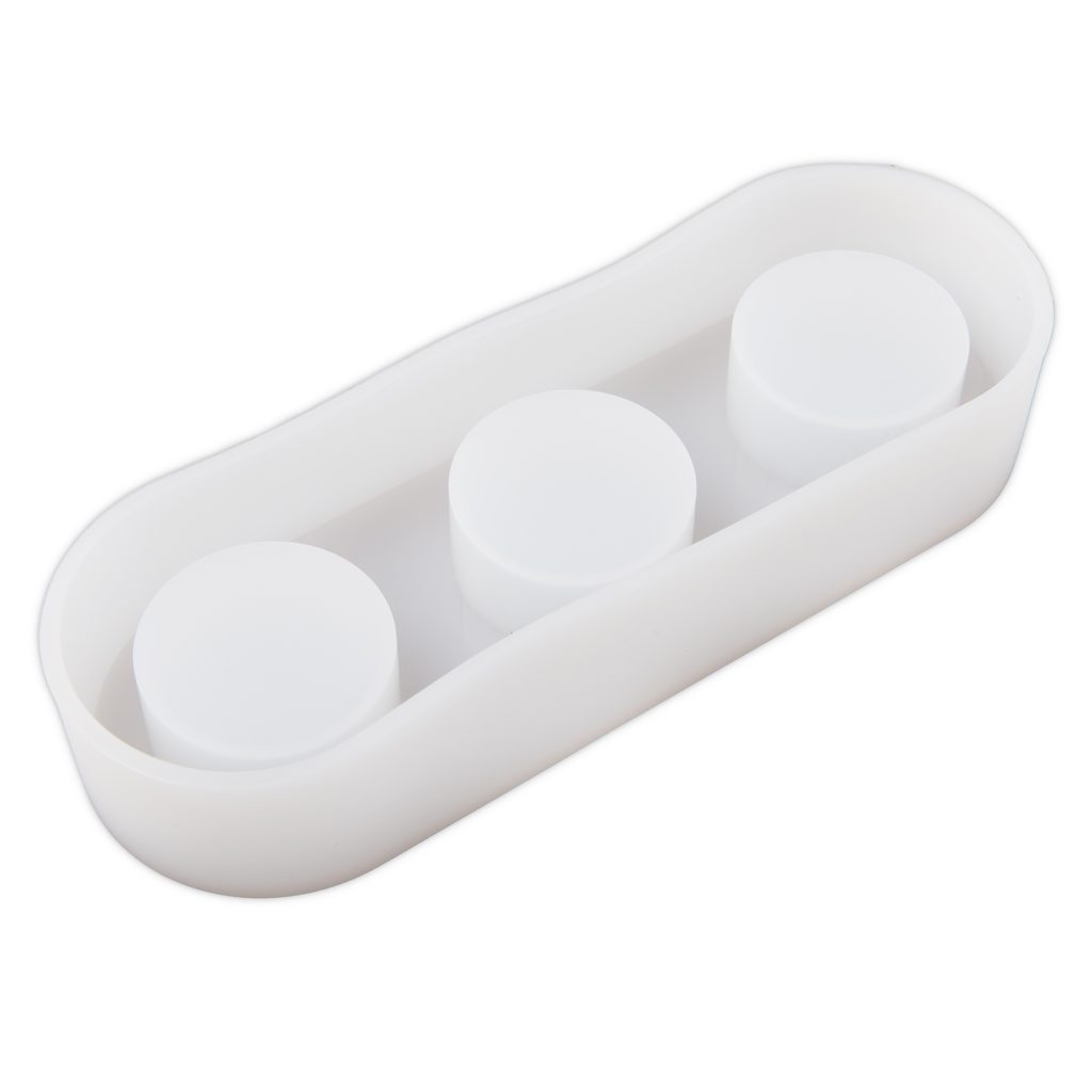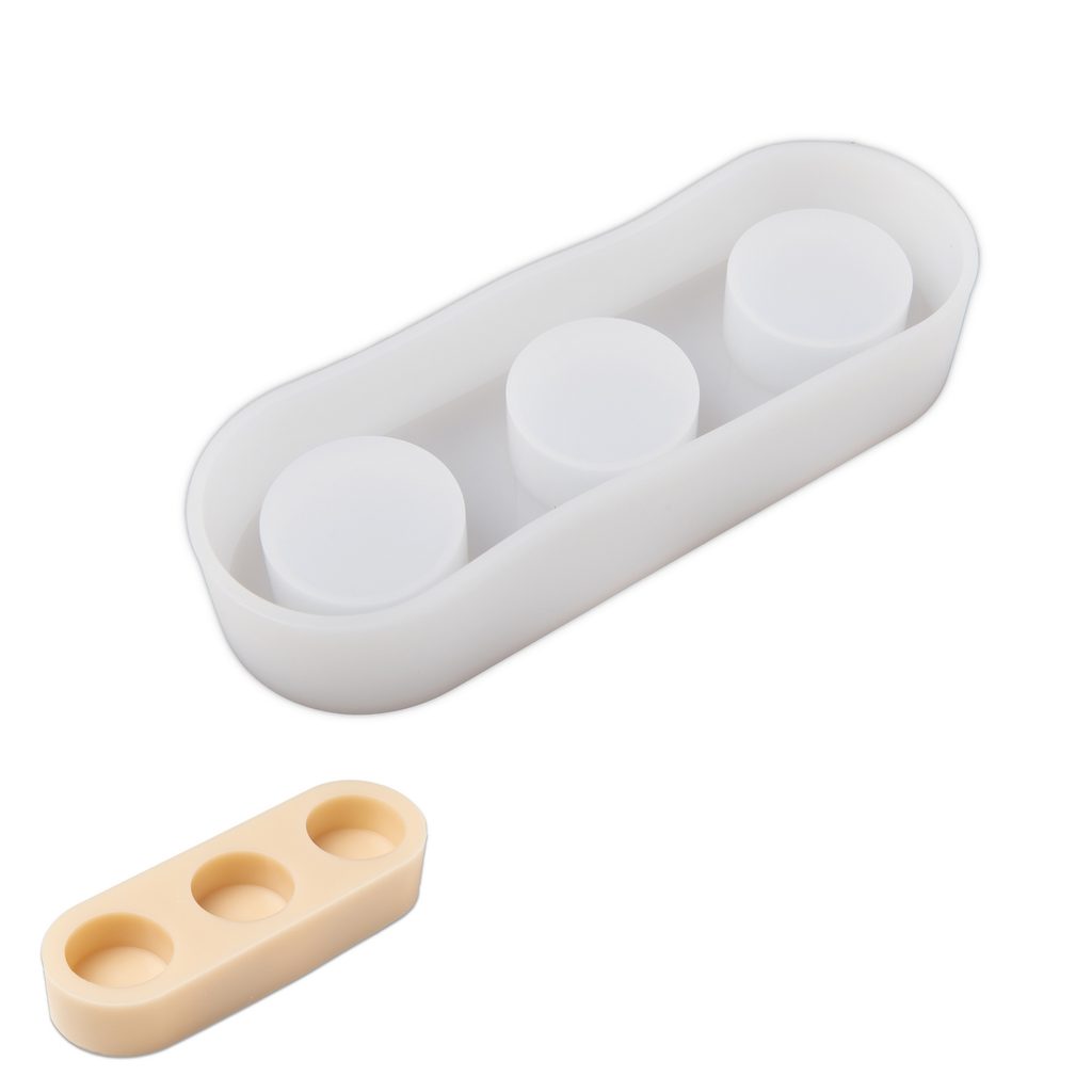 Silikonová forma slouží pro odlití stojanu na tři čajové svíčky. Má tvar oválu s rozměrem 190 x 60 mm s výškou 30 mm. Samotný otvor pro čajovou svíčku má průměr 42 x 21 mm. Forma je ideální na odlévání hmoty Jesmonite a dalších kreativních hmot podobného charakteru. Forma slouží k opakovanému použití. Hotový odlitek vám poslouží jako krásná a funkční dekorace. K prodloužení životnosti formy doporučujeme před procesem vylévání naaplikovat na formu separátor.