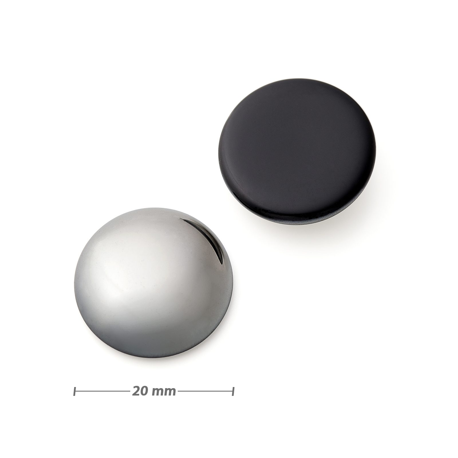 Skleněný kabošon 20mm hematit je vhodný k výrobě šperků, obšívání rokajlovými korálky, zasazení do kovového lůžka nebo k nalepení na různé materiály. Pro přichycení kabošonu doporučujeme použít transparentní bižuterní lepidlo.