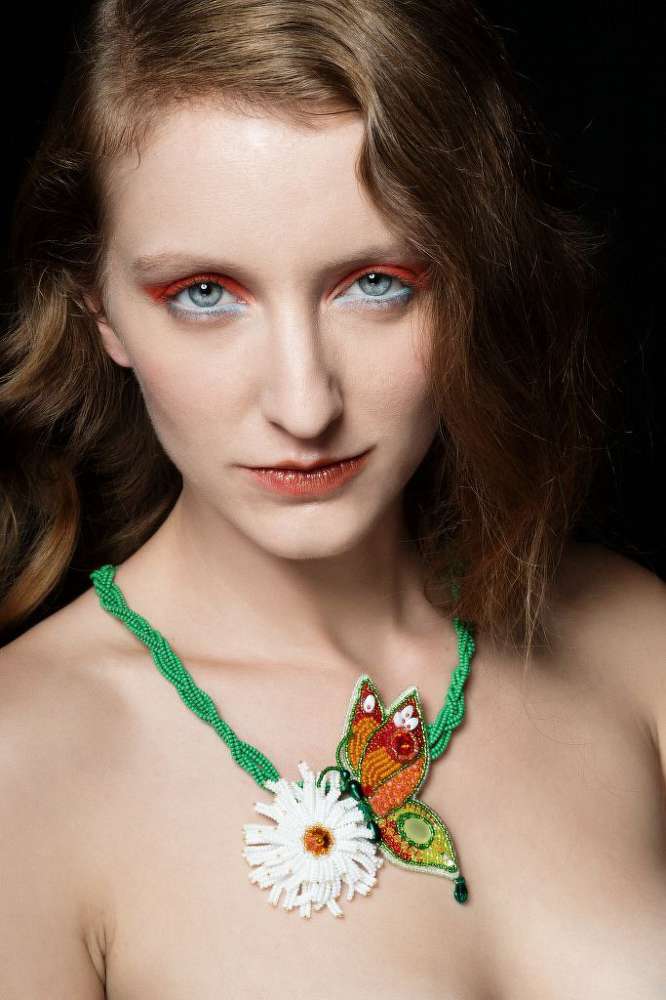 Náhrdelník Vzpomínky na léto. Nechť vzpomínky na toto slunné léto budou veselé a mírumilovné jako motýlek nad kytkou. :)