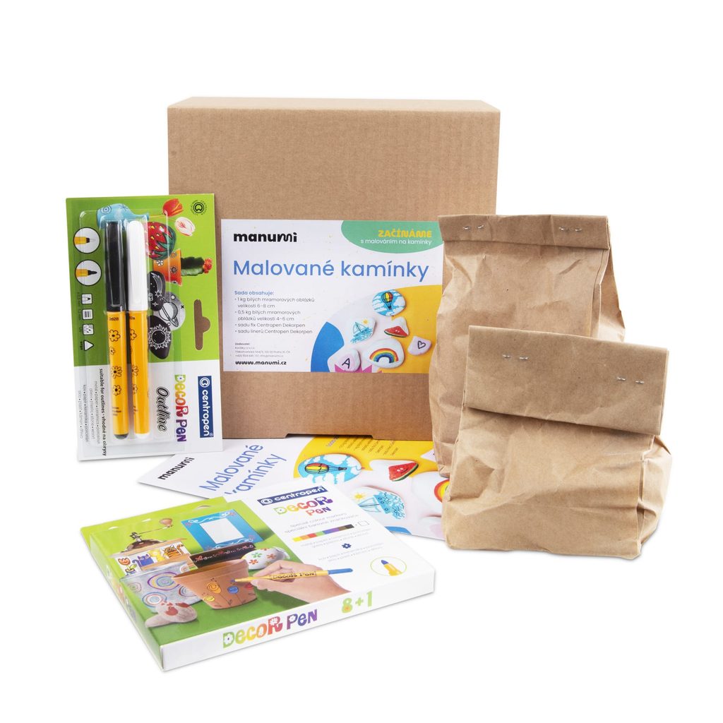 Potkáváte na procházkách přírodou nebo městem malované kamínky a chtěli byste si to také vyzkoušet? Pak je tento starter kit přesně tím, co hledáte! Najdete v něm minimálně 11 kamínků ve velikosti 4 až 8 cm, sadu 9 pigmentových fixů, které jsou po dostatečném zaschnutí odolné proti oděru i vodě a 2 obrysové fixy v bílé a černé barvě. Stačí tedy otevřít balíček a můžete se pustit do malování! Tento starter kit je vhodný i jako dárek pro nadšence do tvoření. Inspiraci pro malování na kamínky a to, jak lze kombinovat různé techniky najdete v našem článku nebo specializovaném rozcestníku.