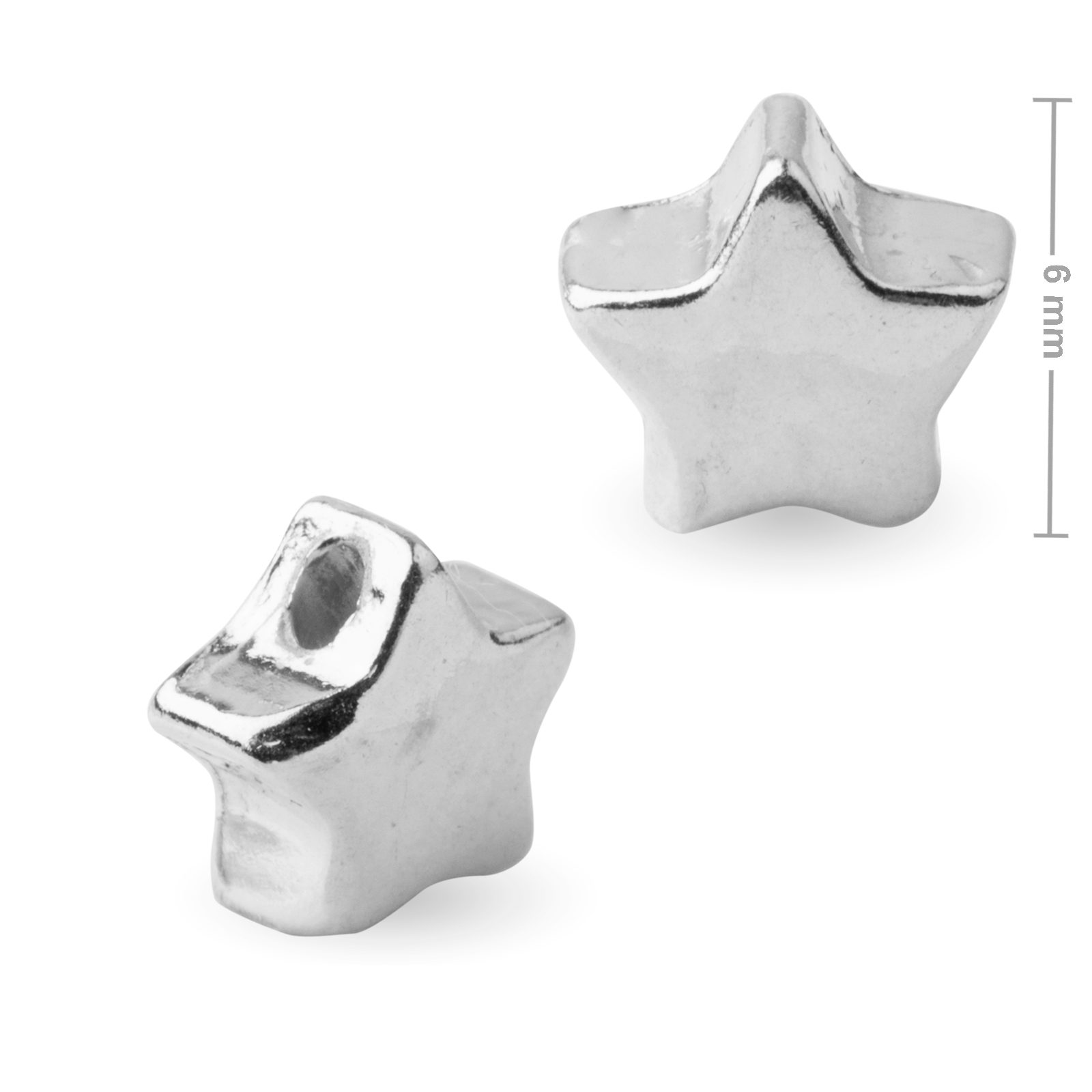 Stříbrný korálek hvězda 6mm je vhodný k výrobě náramků a náhrdelníků nejen ze Shamballa šňůr. Korálek má širší průtah a je vhodný jako komponent při tvorbě šperků. Lze jej použít samostatně nebo jako ozdobný oddělující díl mezi korálky.