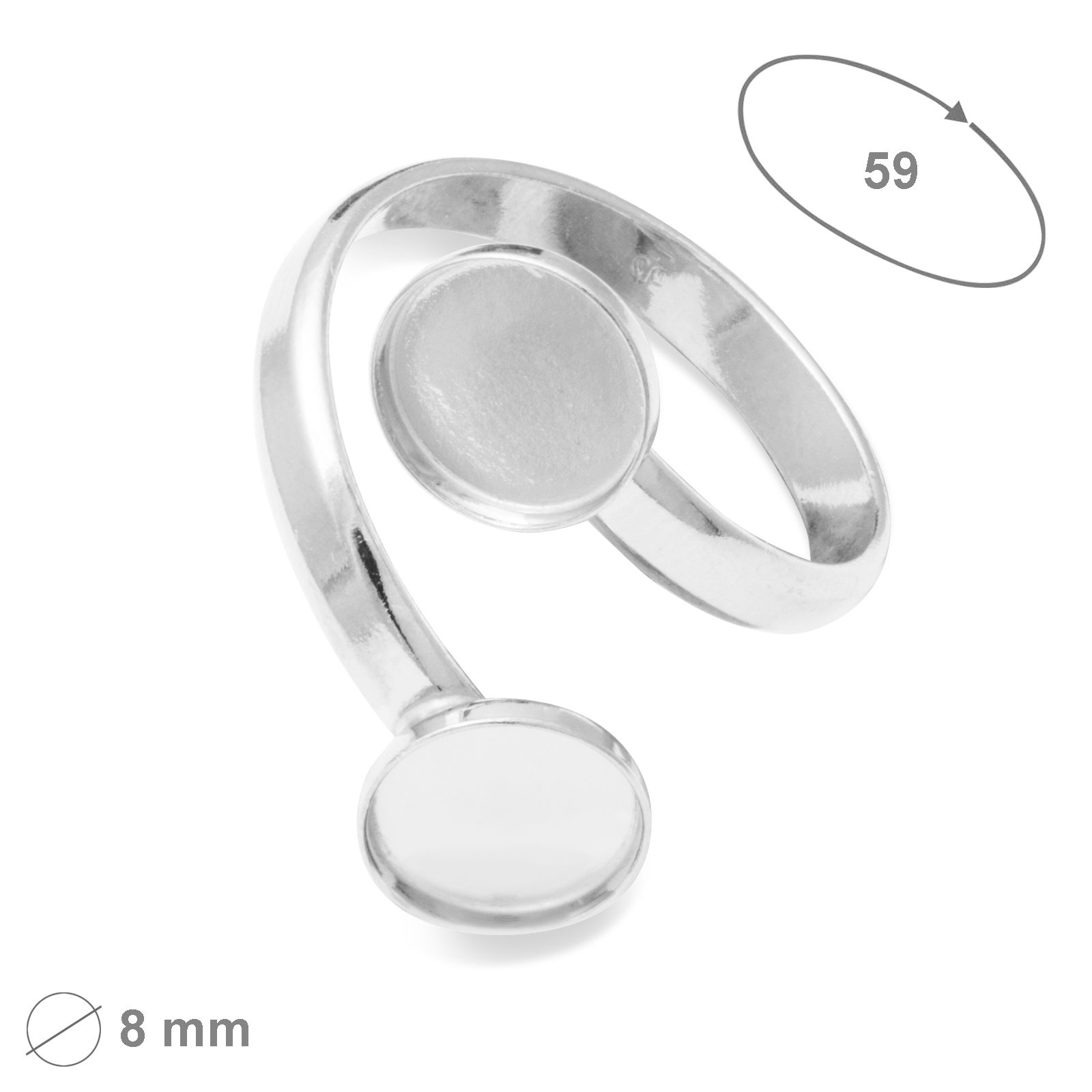 Stříbrný základ na prsten s dvěma lůžky 8mm je ideální komponent pro vylití křišťálovou pryskyřicí. Do prstenu můžete vylít například své oblíbené rokajlové korálky nebo fotografii. Lůžko však můžete použít i na jiné šperky, například při práci s FIMO hmotou. Díky svému provedení si můžete vytvořit jednoduchý doplněk s dlouhou životností.