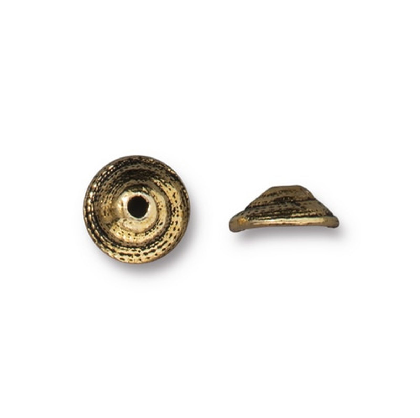 TierraCast kaplík 7mm Shell starozlatý je kvalitní cínový bižuterní dekorativní prvek kolem korálků a minerálů v náramků nebo náhrdelníku. Kaplík je stálobarevný, velmi tvrdý a neobsahuje olovo, nikl ani kadmium.