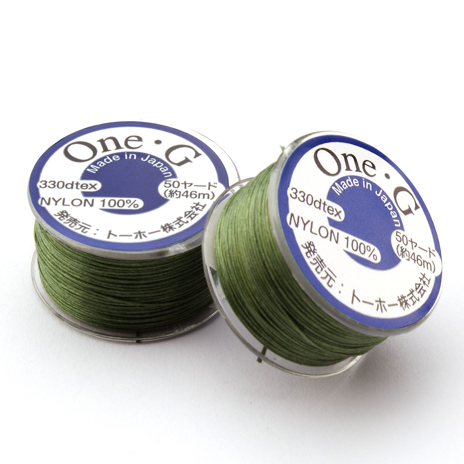 Toho One-G nylonová nit zelená č.6 je velmi tenká a extrémně pevná nit na šité šperky od výrobce korálků TOHO. Nit se téměř netřepí a svou sílou odpovídá niti NYMO tloušťky B.