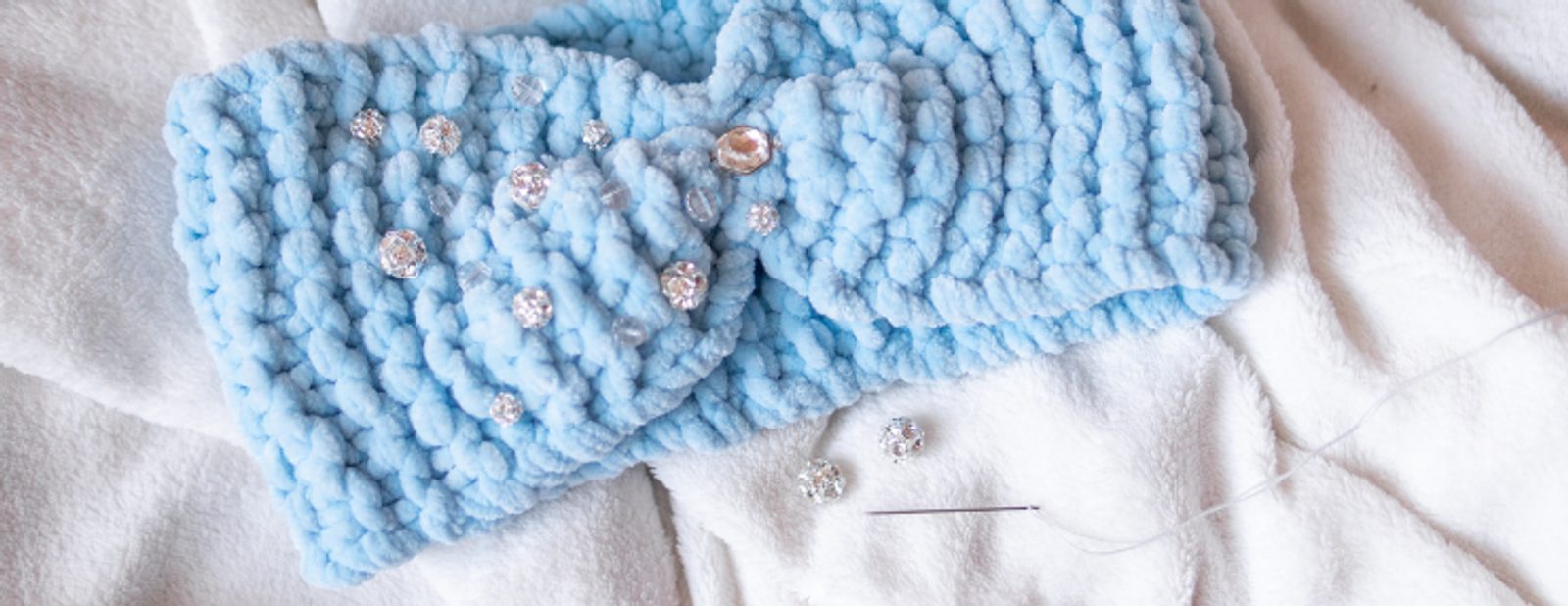 Je to jednoduché. Postačí jehlice velikost 8, žinylka s větší gramáží a pletete. Já pletu hladce, to se mi u čelenek líbí nejvíc, ale je to na každém. Až upletete potřebnou délku, stačí sešít a našít korálky. Doporučuji každý zvlášť, lépe drží. A to je vlastně vše.