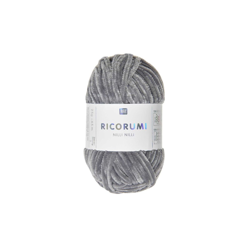 Žinylková příze Ricorumi Nilli Nilli v šedé barvě (026) je vyrobena ze 100% polyesteru. Má jemnou strukturu, která je velmi příjemná na omak a elegantní matný vzhled. Je oblíbená pro výrobu dětských hraček a doplňků i na háčkování různých postaviček a zvířátek ve stylu amigurumi. 25 g klubíčko má návin 65 m a pro háčkování doporučujeme použít háček velikosti 3 mm. Objevte kouzlo této měkoučké příze a pusťte se do nových pletacích či háčkovacích projektů. Návody na použití této příze naleznete v kategorii Knih a návodů.
